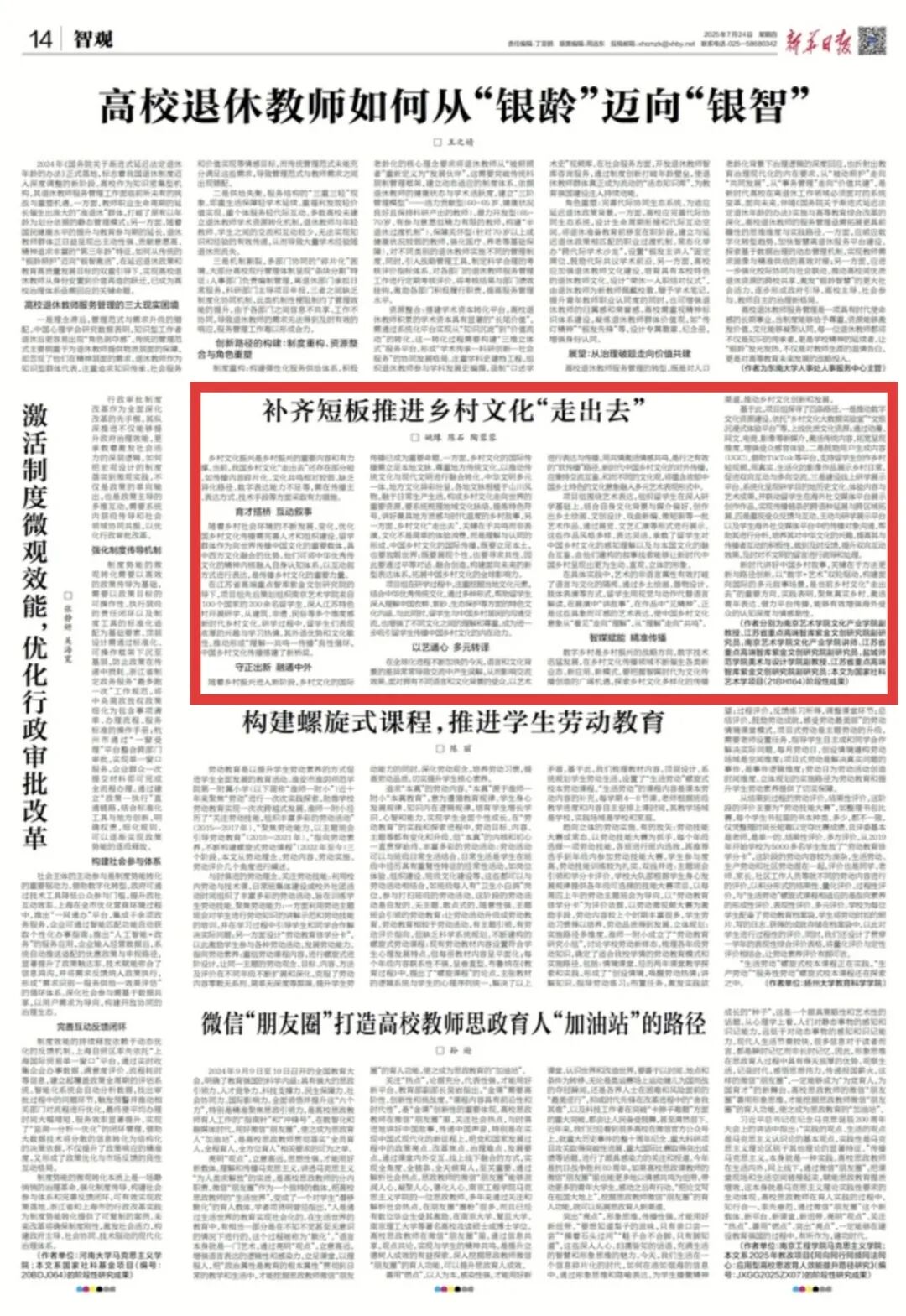 乡村文化振兴是乡村振兴的重要内容和有力支撑。当前,我国乡村文化“走出去”还存在部分短板,如传播内容碎片化、文化共鸣相对较弱、缺乏差异化路径、数字表达能力不足等,需在传播主体、表达方式、技术手段等方面采取有力措施。