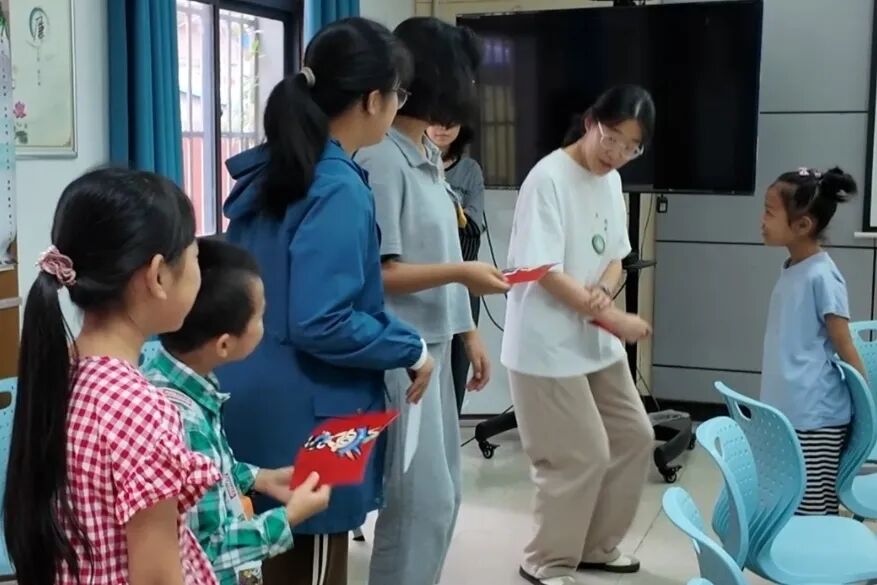 “中华民族像浩瀚的星空,56个民族是星星,谁能说说星星的故事?”志愿者的话音刚落,孩子们便争先恐后地举手,稚嫩的童声惹得全场笑意融融。