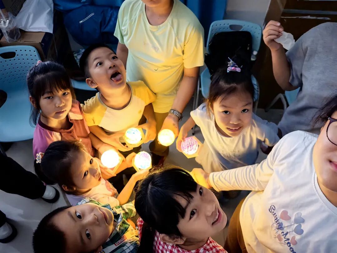 志愿者捧起绘本,温暖的灯光映照在书页上,讲述着嫦娥奔月、玉兔为伴的古老传说,以及灯笼所承载的团圆期盼。孩子们听得入神,眼中闪烁着对传统节日的好奇与向往。“今天,我们一起做会发光的月亮灯,把中秋的圆月‘捧’回家!”