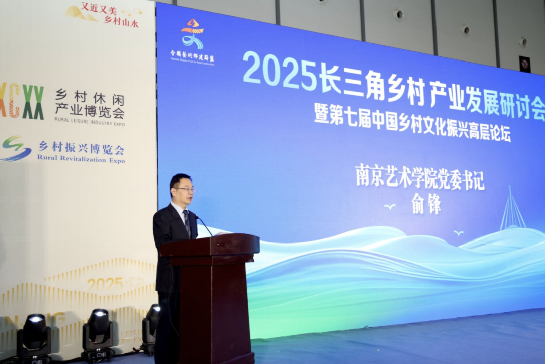10月25日,2025长三角乡村产业发展研讨会暨第七届中国乡村文化振兴高层论坛在南京国际博览中心举行,此次论坛是2025乡村休闲产业博览会、乡村振兴博览会的一项重要安排,也是全国艺术乡建联盟成立后指导开展的首次大型活动。我校党委书记俞锋受邀出席论坛开幕式并讲话。校党委副书记李向民做论坛主旨报告。