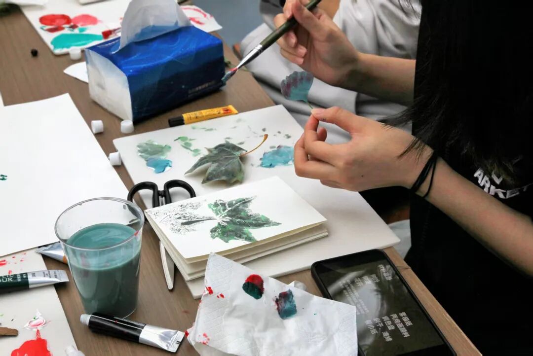“原来叶子的背面藏着这么美的线条!”现场惊叹声与欢笑声交织,居民们在志愿者的陪伴下,大胆尝试、自由创作,完成了一幅幅独具美感的自然拓印画。