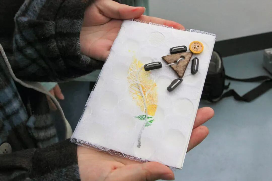 活动最后进入“手工书制作”环节。志愿者们细致讲解裁剪、折叠与装订的技巧,并协助居民将拓印作品一一整理、组合、装帧成册。一页页拓印画,在指尖的翻动中化作可触摸、可留存的艺术日记,将片刻的自然体验,升华为永恒的美学记忆。