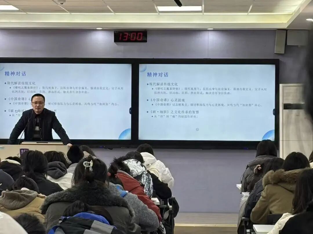 党总支副书记刘大哲主讲“解读西迁精神——弘扬传统新路径”思政讲座。从“为何弘扬传统”切入,指出传统文化并非静止的标本,而是可供创造性转化的“活态资源”,其生命力正来源于与时代精神的持续对话。围绕“如何弘扬”,提出从“保生”到“创生”的实践转向,强调借助科技、市场与跨平台传播,实现传统文化符号的当代转化。以李子柒、敦煌“飞天”等案例,说明传统如何融入现代生活;通过《哪吒》《中国奇谭》等作品,揭示经典与当代社会的情感共鸣。强调要进一步把握西迁精神中“胸怀大局、弘扬传统”的内涵,学以致用,努力让西迁精神在创新中得以延续和升华。