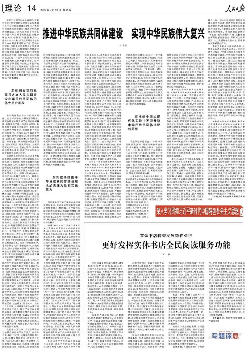 实体书店转型发展并非业态的简单叠加,而是通过提供优质内容、丰富阅读场景、创新服务形式等,延伸服务链条,形成以图书、阅读为核心的综合服务体系,将原本单一的图书销售拓展为包含深度阅读引导、文化创意展示、公共文化交流等在内的综合服务,进而推动文化产品和服务供给提质增效、优化升级、精准适配。 在实践中,北京、上海、杭州等城市的一些实体书店通过空间功能的多元化重组,转型成为集阅读学习、休闲聚会等于一体的复合型文化空间,在更好满足人民群众多样化、高品质精神文化需求的同时,为推进全民阅读走深走实注入活力。