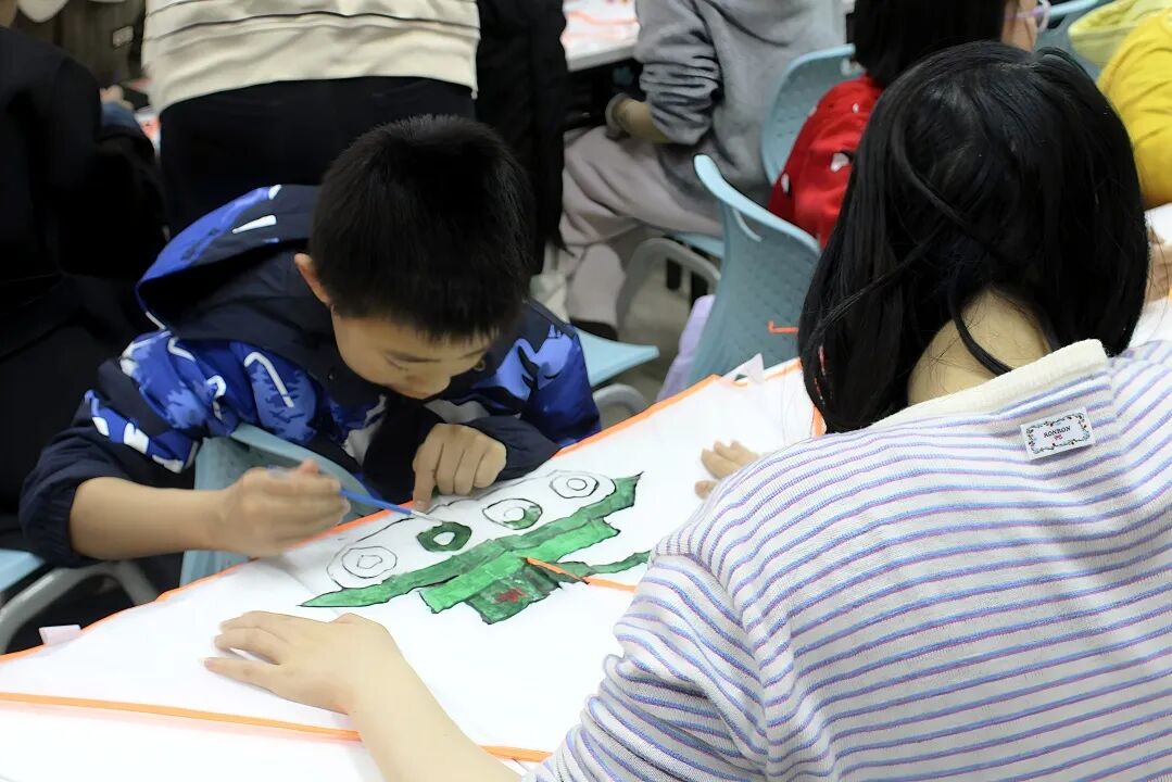 志愿者们围在孩子身旁,从造型勾勒、色彩搭配到纹样装饰,手把手答疑解惑、悉心指导。孩子们拿起画笔,将春日繁花与心中奇思妙想绘于纸鸢,灵动纹样、鲜亮色彩让普通纸鸢成为专属童年美好,现场墨香与欢声笑语交融。孩子们在亲手创作中体会传统美学的独特魅力,在沉浸式体验中感受非遗技艺的匠心。